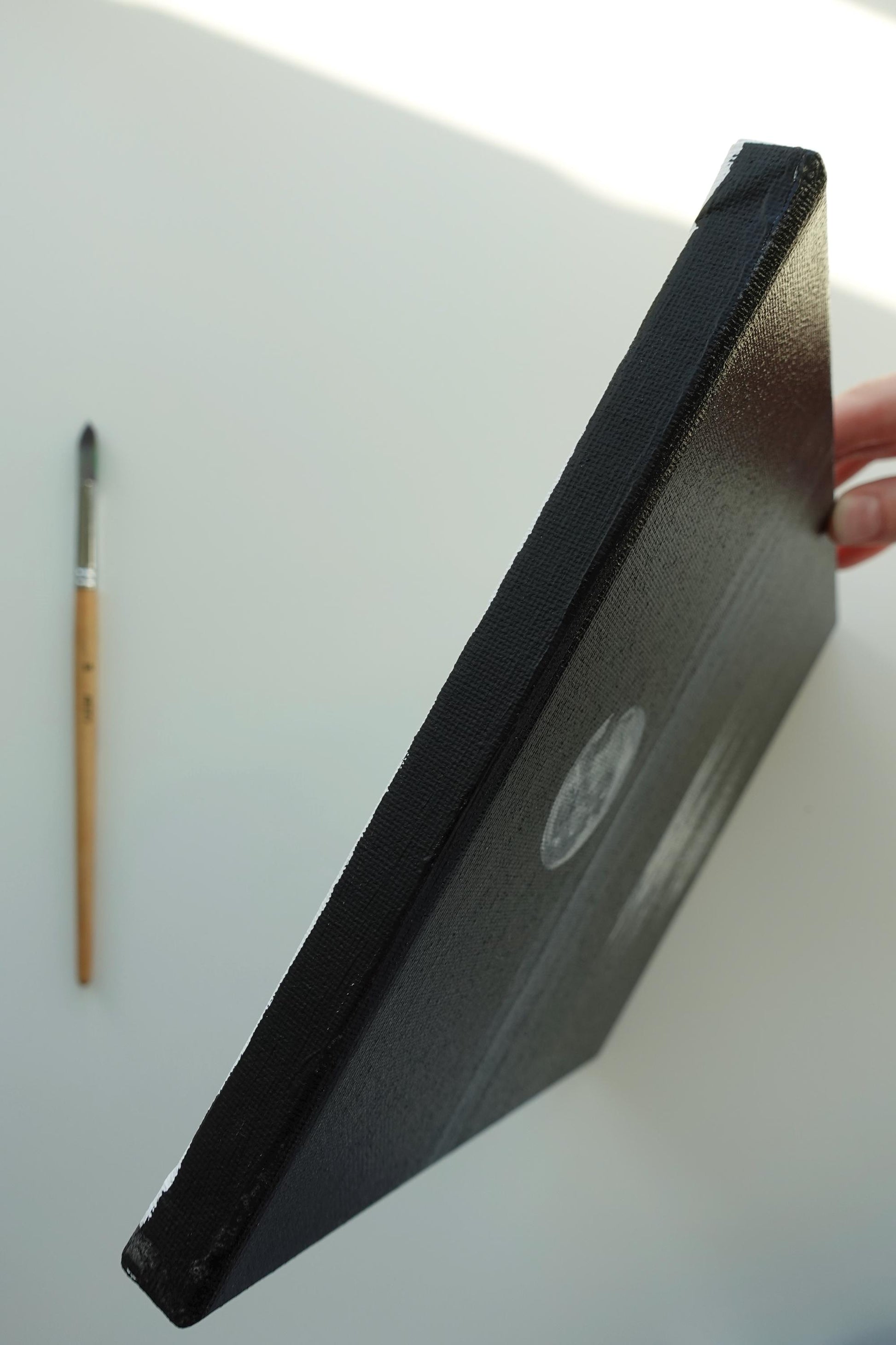 Original Moonlit Nightscape Painting: Minimalist Black and White Art (8x10 Canvas)