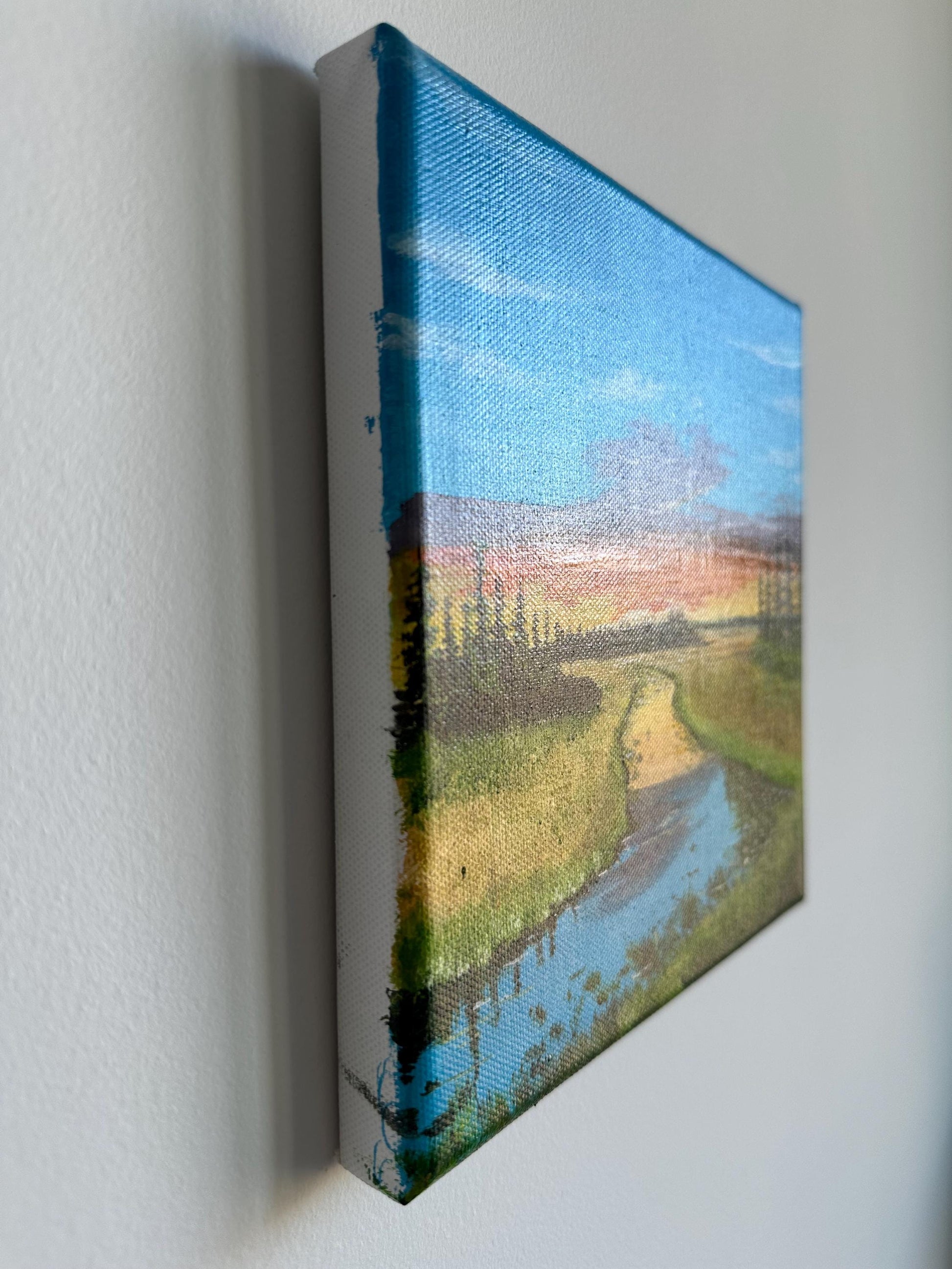 Original River Landscape Acrylic Painting: 8"x8" Nature Art