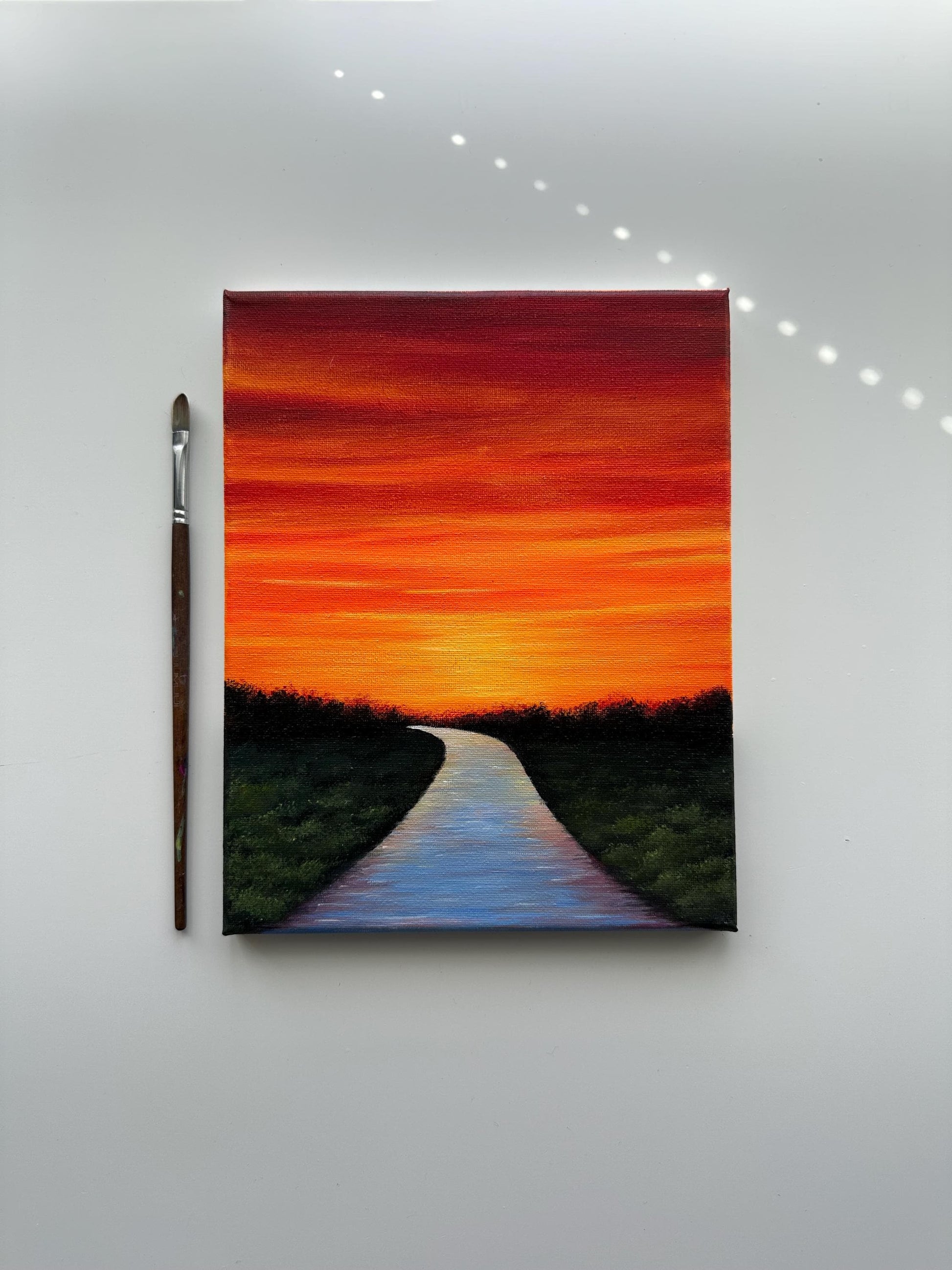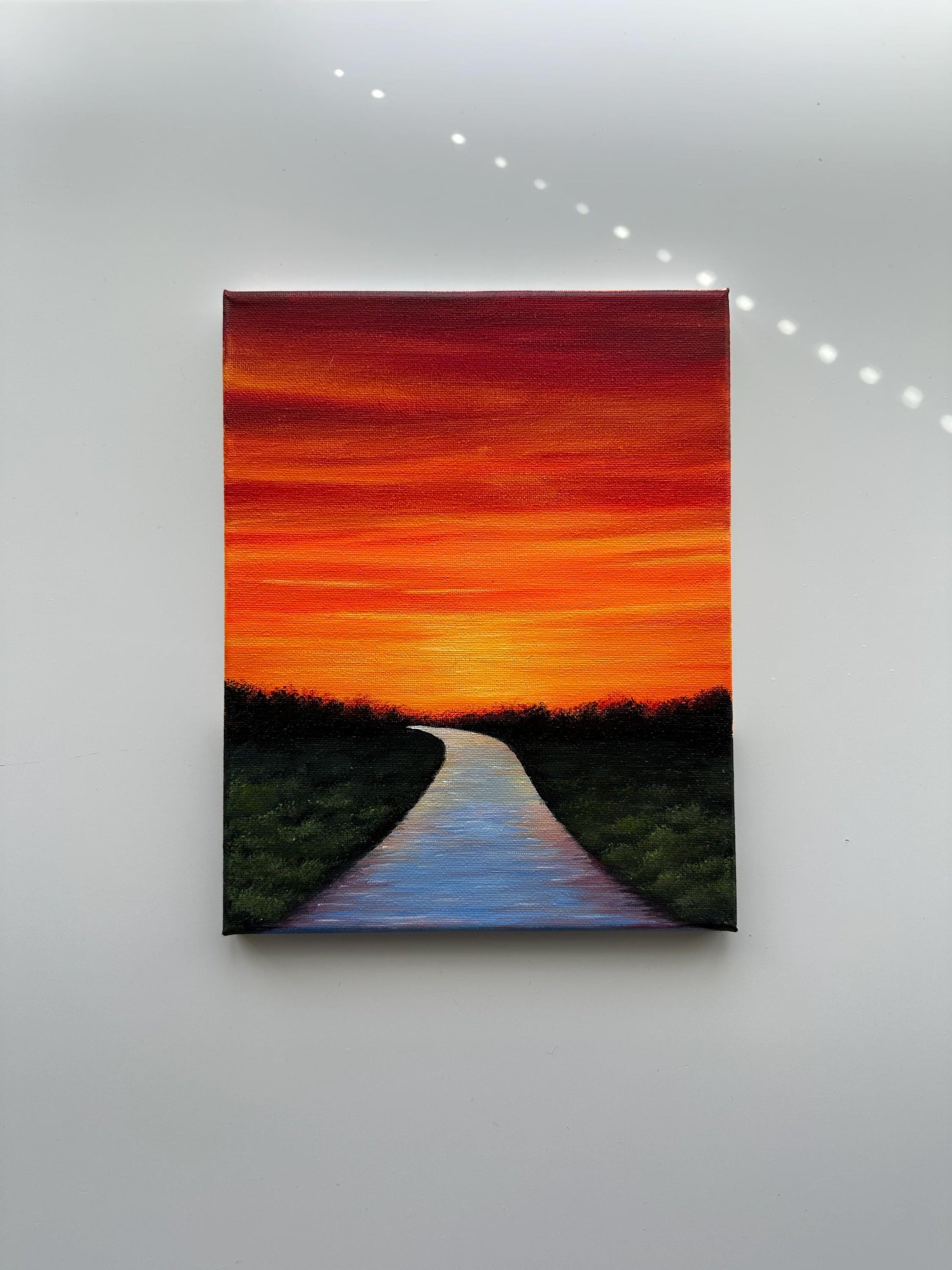 River Path at Glowing Sunset – Original Acrylic Painting, 8×10 inch on Canvas